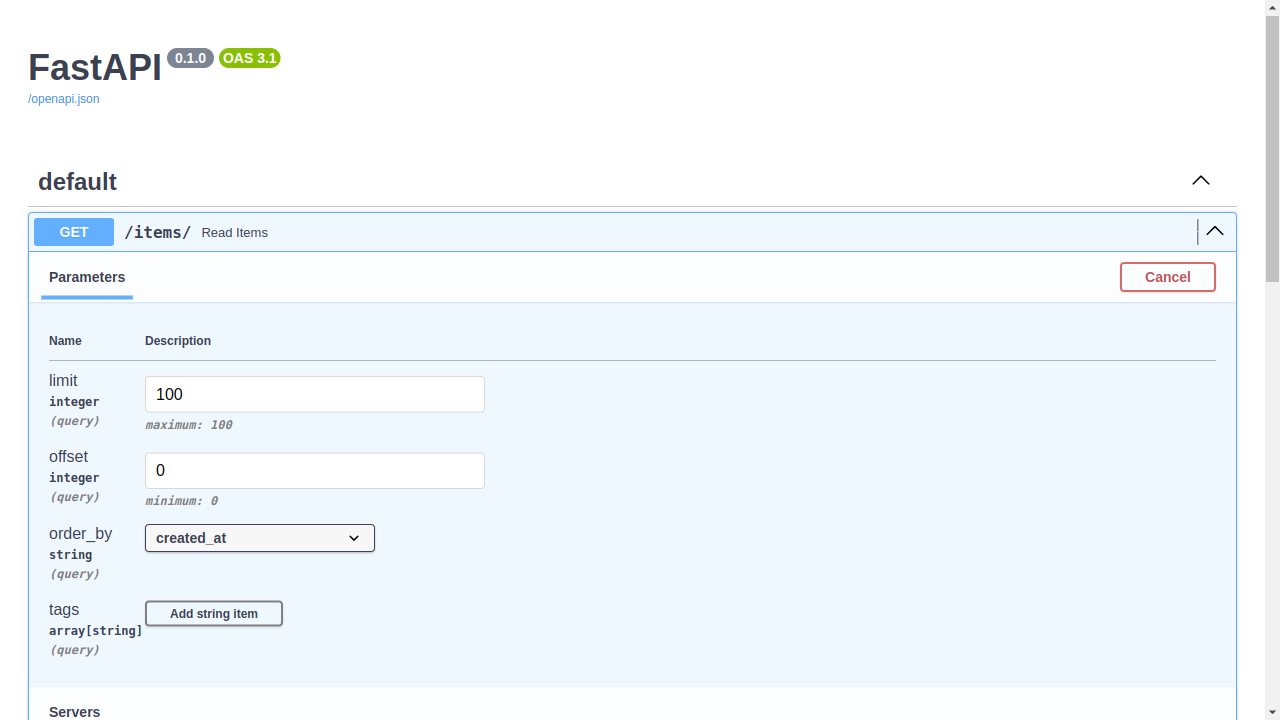 你可以在 /docs 頁面的 UI 中查看查詢參數: